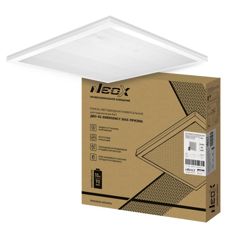 Светильник светодиодный ДВО-02-EMERGENCY 3665-ПРИЗМА 36Вт 6500К 595х595х19 без БАП-10W90 универс. панель NEOX 4690612053028