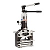 • Максимальная ширина шины: 150 мм • Максимальная толщина шины: • медная: 10 мм / алюминиевая: 12 мм • стальная: 6 мм • Тип лезвий: V-образный, гильотинный с высечкой • Возможность стационарного крепления пресса к рабочему столу • Рез шины без замятий и заусенцев • После резки шины образуется высечка шириной 9 мм • Самоцентрирующаяся конструкция ножа • Предназначен для поперечной резки шин • После резки шина не требует дополнительной обработки • Максимальное усилие: 20 т • Вес инструмента: 30.70 кг • Упаковка: деревянный ящик • Габариты упаковки: 625х300х215 мм