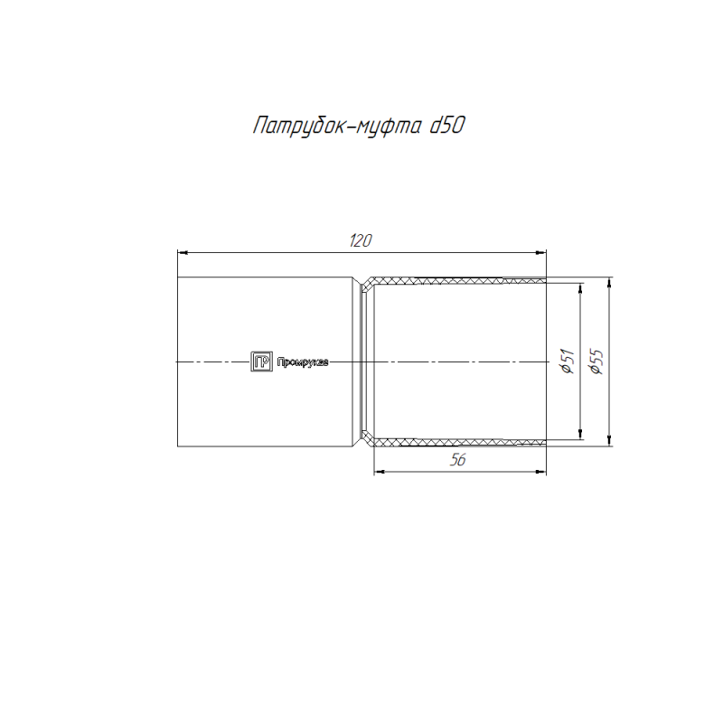Патрубок-муфта d50мм безгалоген. (HF) атмосферостойкая сер. Промрукав PR13.0355