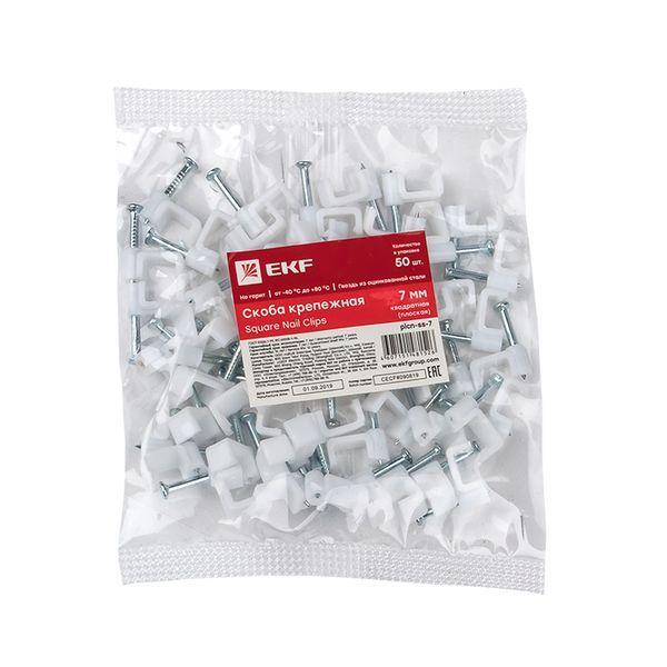 Скоба крепежная квадратная плоская 7мм (уп.50шт) EKF plcn-ss-7