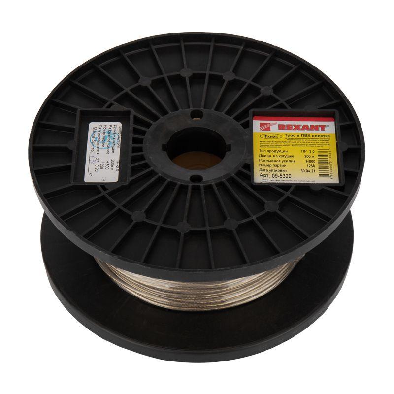 Трос стальной в ПВХ изоляции d2.0мм (200м) REXANT 09-5320