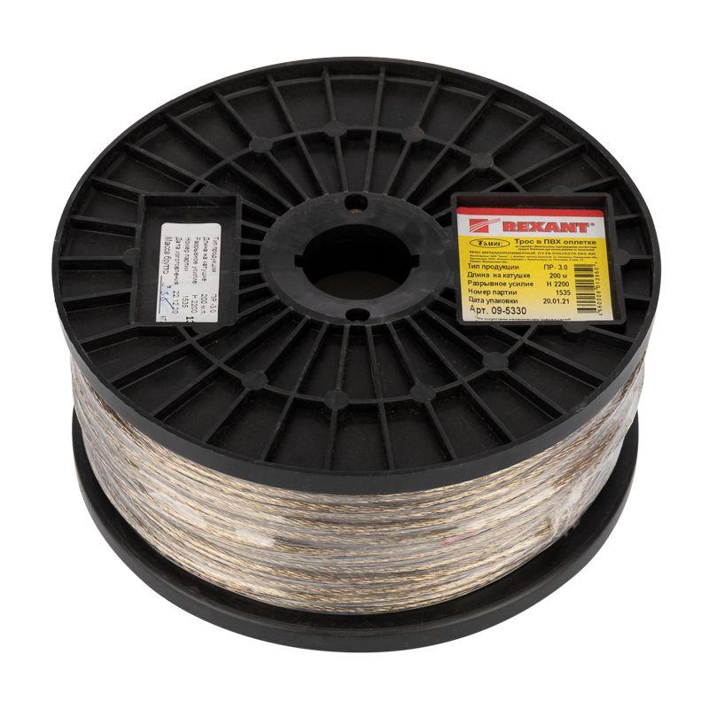 Трос стальной в ПВХ изоляции d3.0мм (200м) REXANT 09-5330